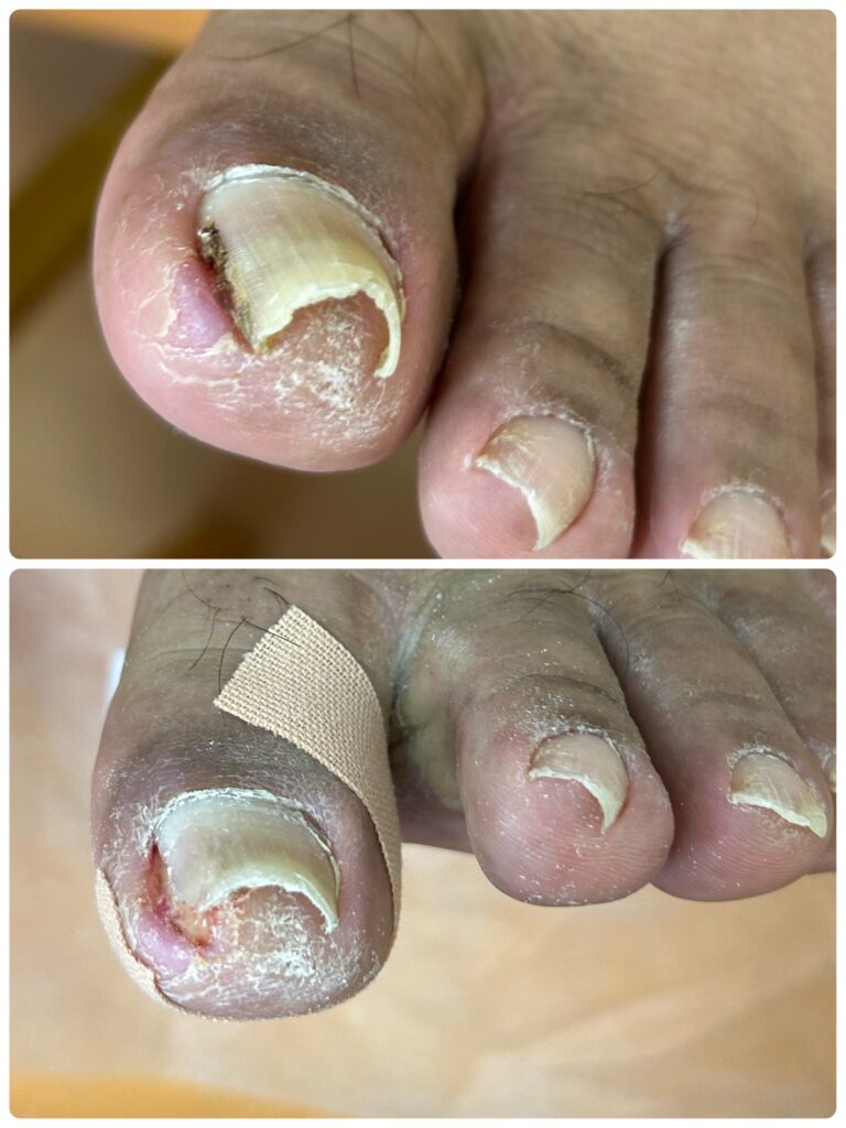 • テーピングで皮膚を外側に引っ張り、爪との接触を減らす