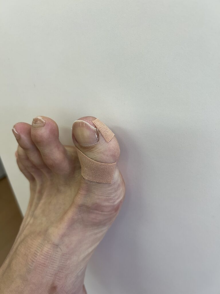 長年、親指の巻き爪にテーピングで対処していたが、ついに歩けないほどの痛みに。
