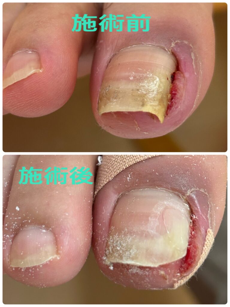 • 巻き爪 矯正後は、歩き方の指導やセルフケア方法も提供し、再発を防ぐ体制を整えています。