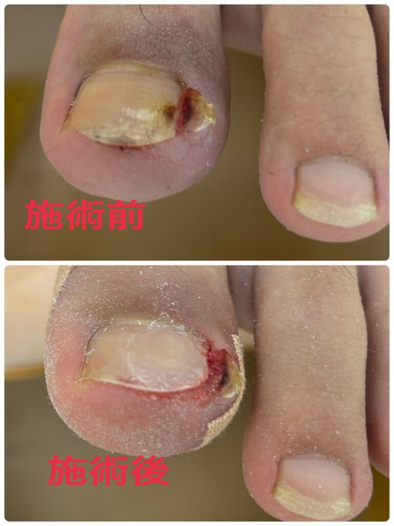 A:刺さっている爪を“痛くなく”取り除き、爪と皮膚の距離を確保します。