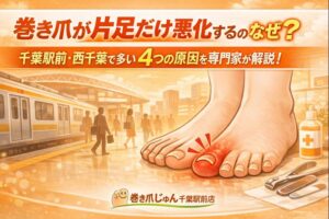 この記事では、千葉駅前店の専門的な視点から、巻き爪陥入爪違いを分かりやすく解説し、緑区や千葉駅周辺で多い生活背景にも触れながら、正しい向き合い方をお伝えします。